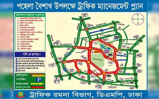 বাংলা নববর্ষ উদযাপন উপলক্ষে পহেলা বৈশাখ ঢাকায় ট্রাফিক ব্যবস্থাপনায় বিশেষ নির্দেশনা দিয়েছে ঢাকা মহানগর পুলিশ (ডিএমপি)।